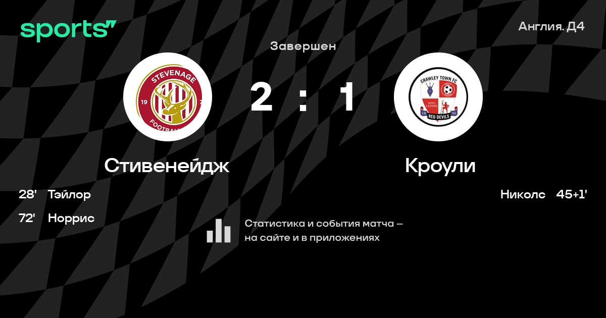 Стивенейдж – Кроули: Стивенейдж не проигрывает в 5 из 7 последних матчей против этого соперника