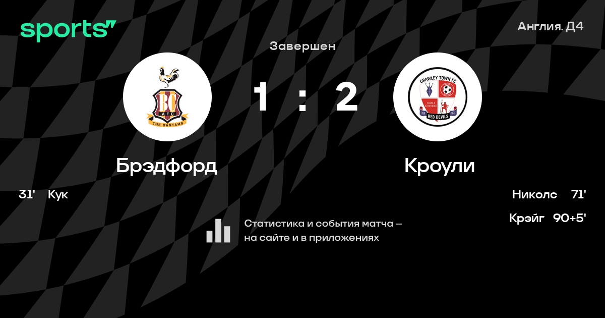Брэдфорд – Кроули: Кроули забивает в 5 последних матчах против этого соперника
