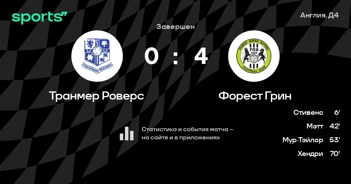 В последних 5 играх Транмер Роверс пропускает в среднем 0.20 гола за игру