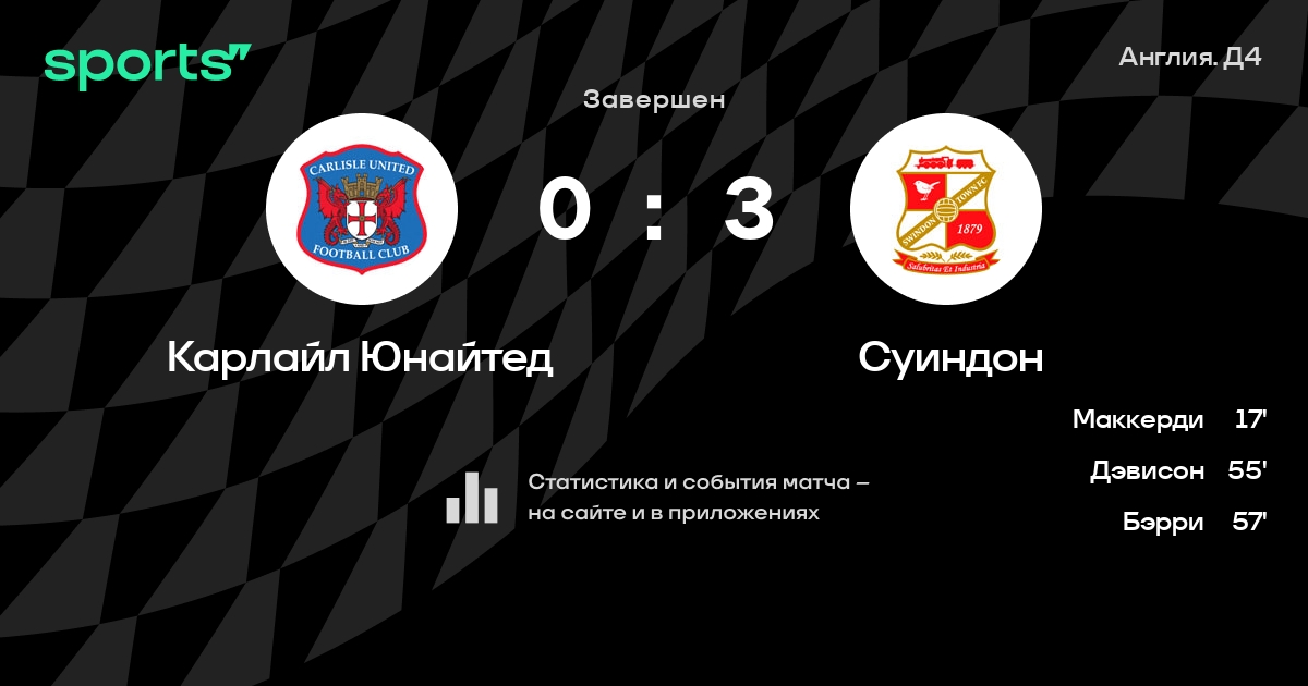 Карлайл Юнайтед – Суиндон: Суиндон забивает в 4 последних матчах против этого соперника