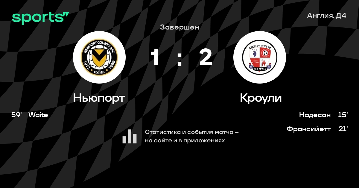 Ньюпорт – Кроули: Кроули не проигрывает в 5 из 7 последних матчей против этого соперника