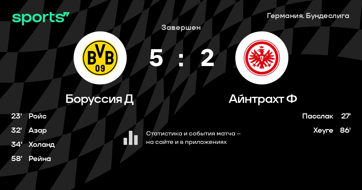Дубль Холанда помог «Боруссии» Дортмунд разгромить «Айнтрахт» (5:2) в 1-м туре Бундеслиги