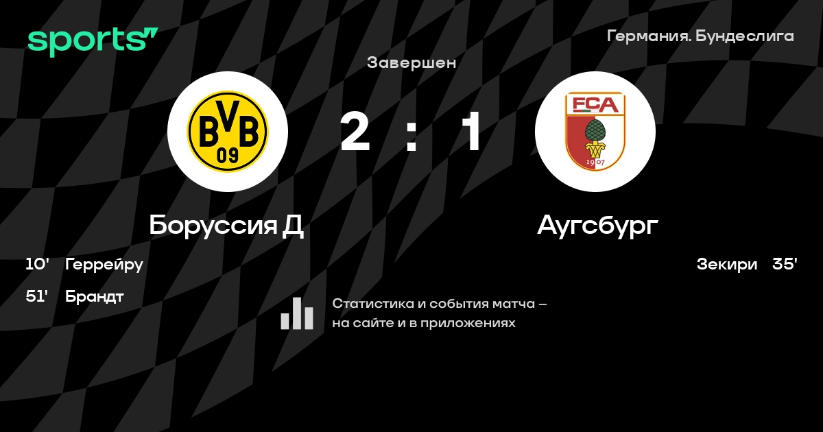 «Боруссия» Дортмунд победила «Аугсбург» (2:1) благодаря голам Геррейру и Брандта