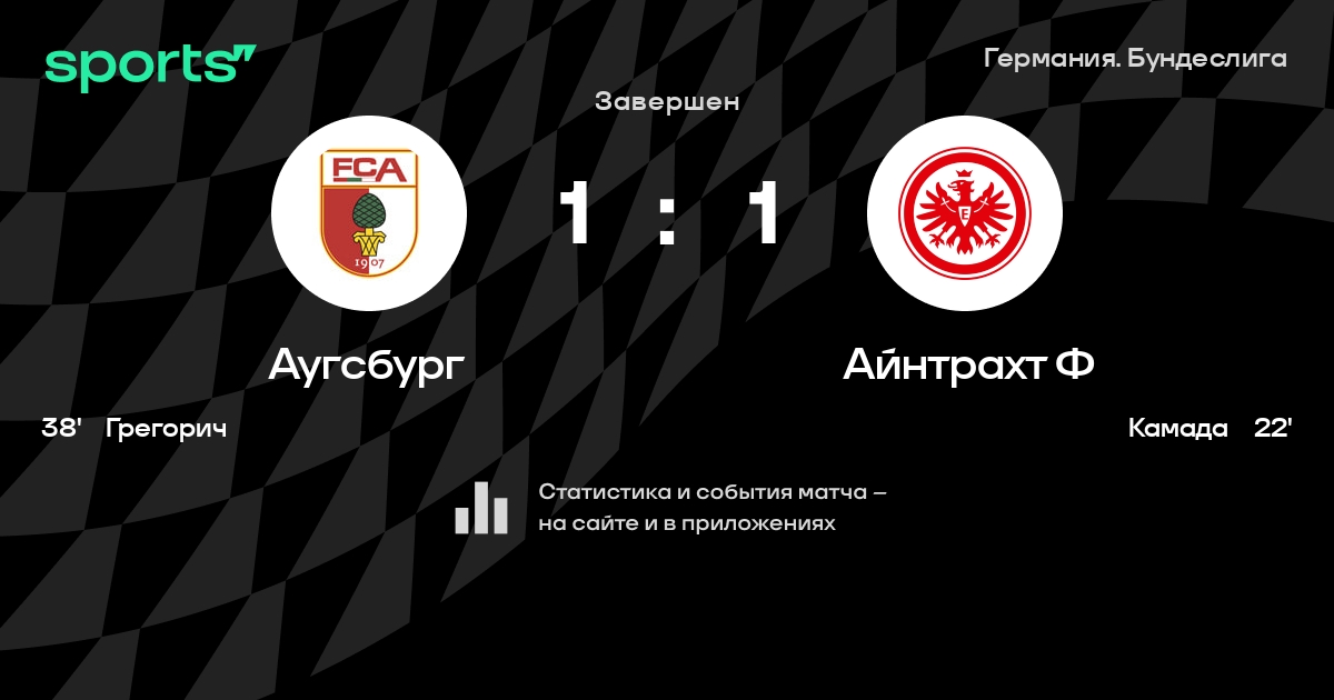 Аугсбург – Айнтрахт Ф: Айнтрахт Ф не пропускает в 4 последних матчах против этого соперника