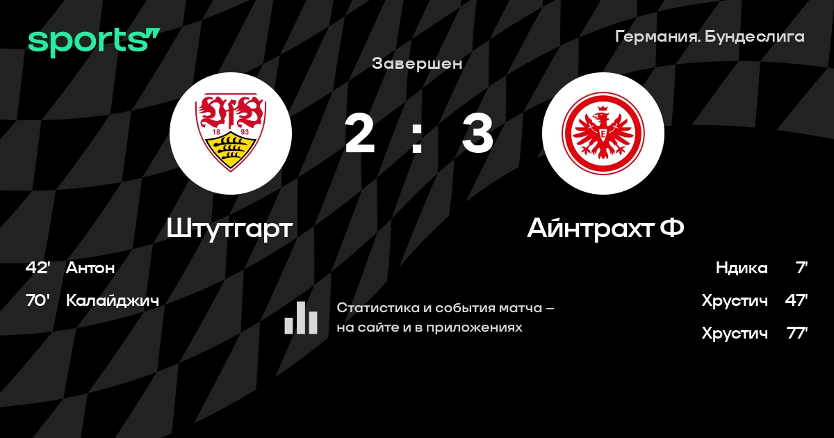 Штутгарт – Айнтрахт Ф: Айнтрахт Ф забивает в 5 последних матчах против этого соперника