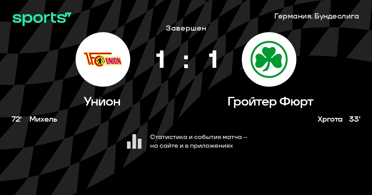 Унион Берлин – Гройтер: Гройтер забивает в 16 из 18 последних матчей против этого соперника