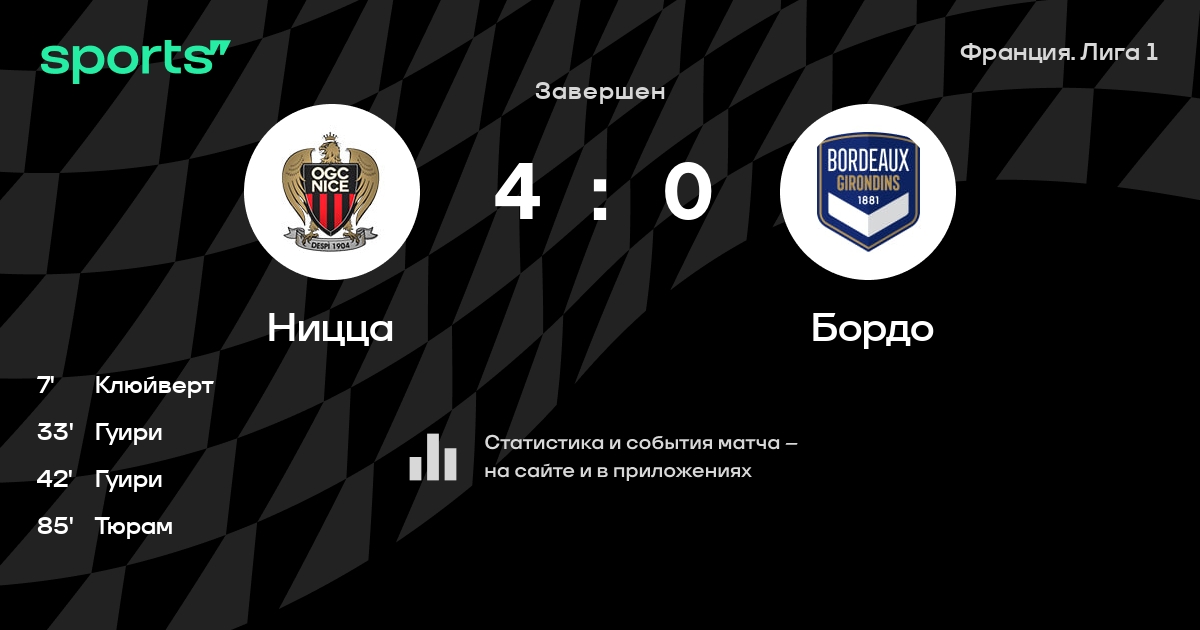 Ницца – Бордо: Бордо не проигрывает в 6 последних матчах против этого соперника в турнире «Франция. Лига 1»