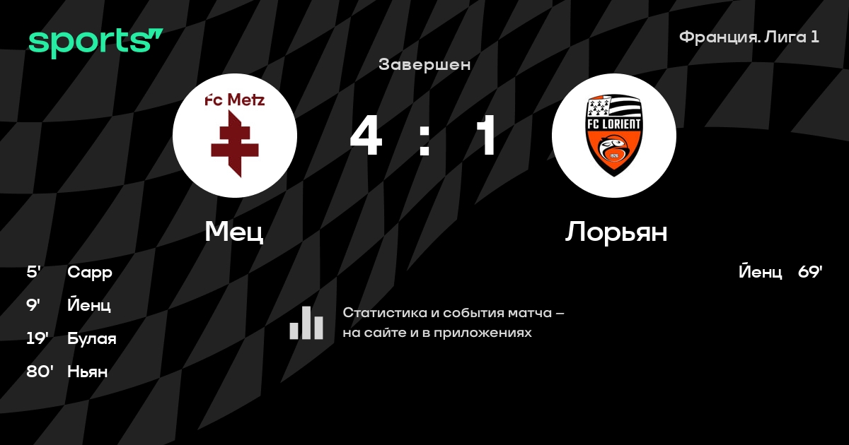 Метц – Лорьян: Лорьян не проигрывает в 9 из 11 последних матчей против этого соперника в турнире «Франция. Лига 1»