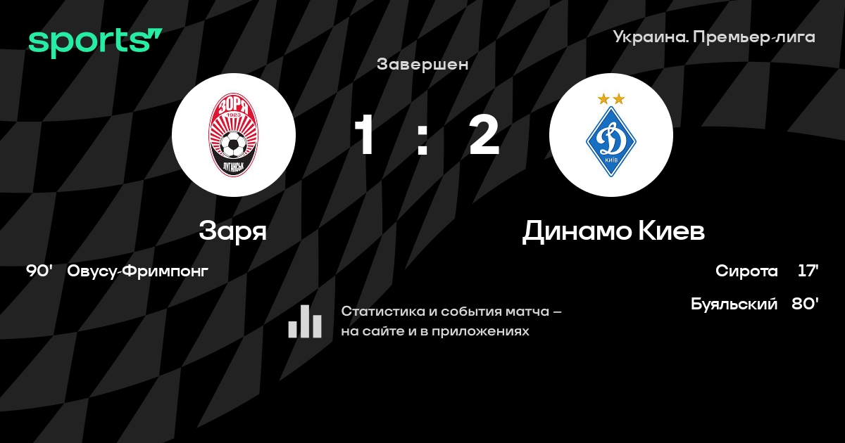 Трансляция Заря - Динамо Киев