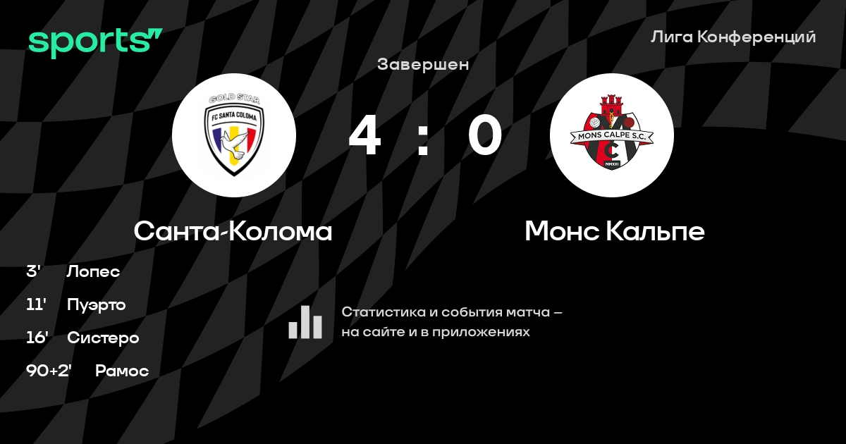 В последних 5 играх Санта-Колома забивает в среднем 1.20 гола за игру