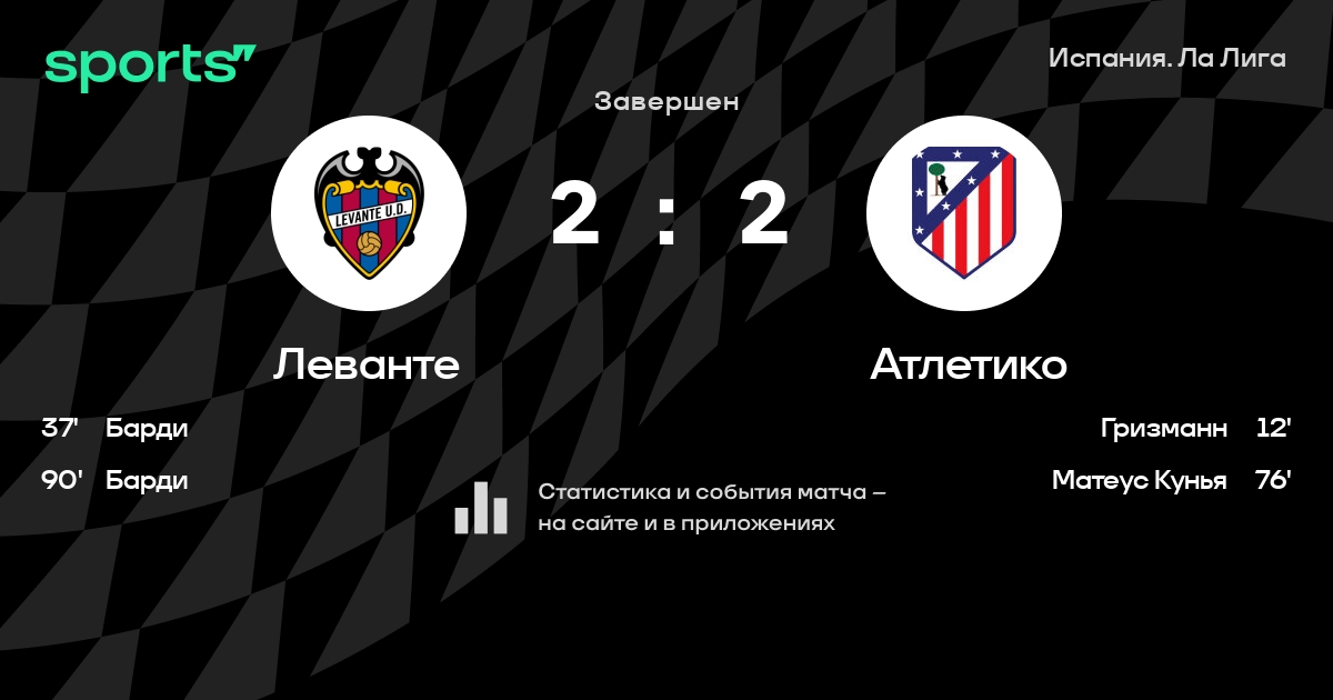 Леванте – Атлетико: Атлетико не проигрывает в 7 из 9 последних матчей против этого соперника