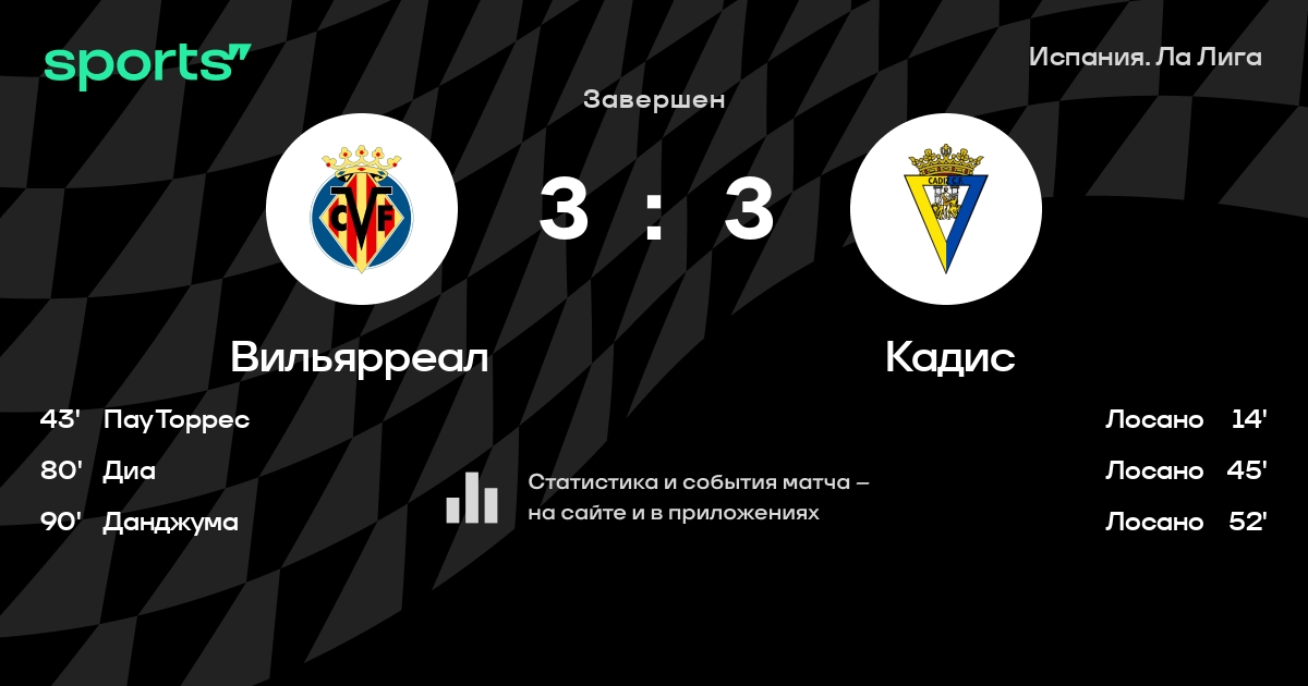 Вильярреал – Кадис: Вильярреал забивает в 6 из 7 последних матчей против этого соперника