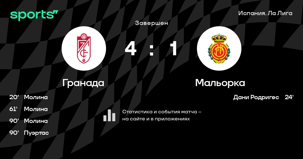 Молина побил рекорд Ла Лиги, сделав хет-трик в 39 лет в матче «Гранады» с «Мальоркой»