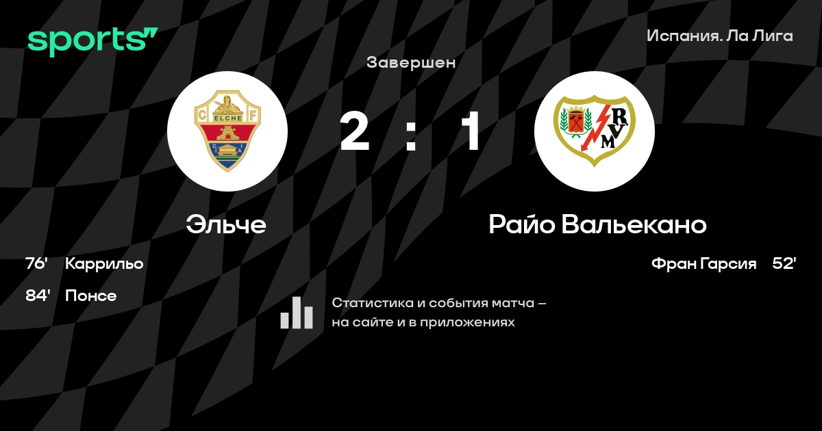 Эльче – Райо Вальекано: Райо Вальекано забивает в 6 последних матчах против этого соперника