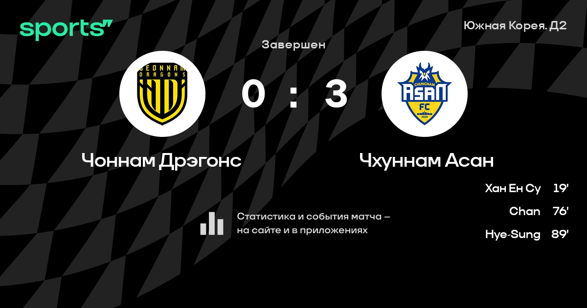 Чоннам Дрэгонс – Чхуннам Асан: Чоннам Дрэгонс не пропускает в 4 последних матчах против этого соперника