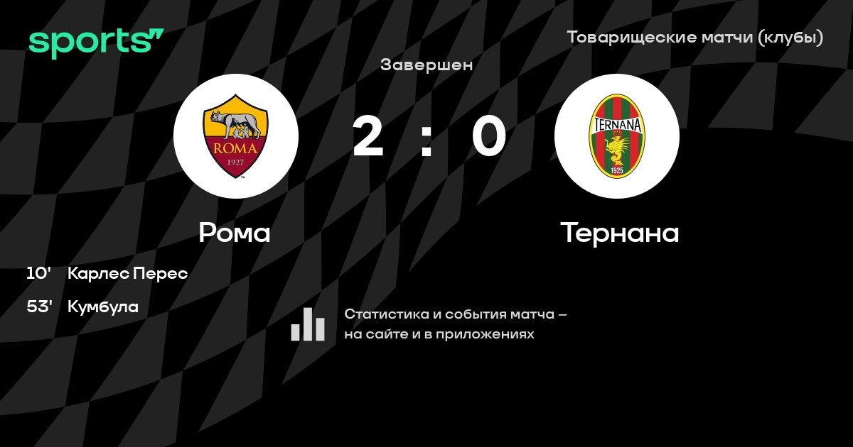 Фузато - Карсдорп, Смоллинг, Манчини - Залевски, Трипи, Вильяр, Диавара - Майораль, Эль-Шаарави, Карлес ПересЗапасные: , Рейнолдс, Кумбула, Рожер, Дзаньоло, Бове, Мхитарян, Дарбо, Джеко, Чьерво