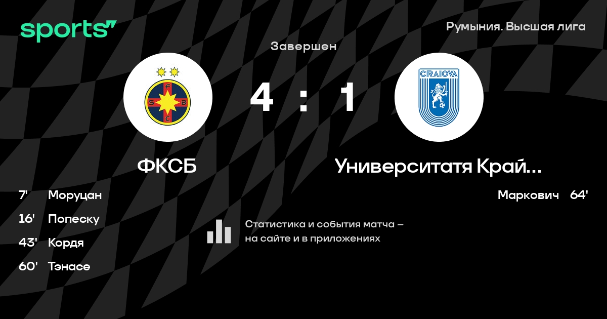 Стяуа – КСУ Крайова: КСУ Крайова не пропускает в 3 последних матчах против этого соперника