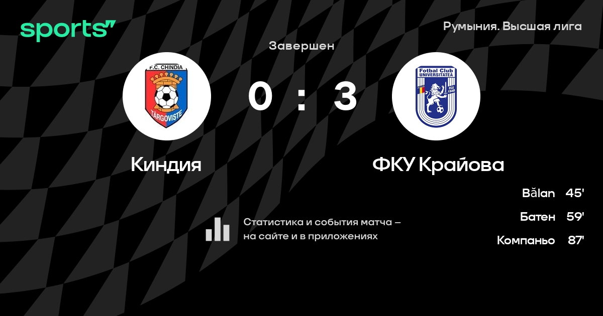 ФКУ Крайова не выигрывает в 6 последних матчах в турнире «Румыния. Высшая лига»