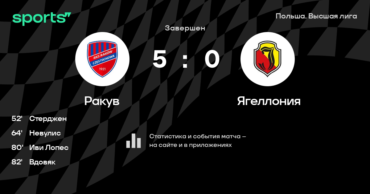 В последних 5 играх Ягеллония забивает в среднем 1.60 гола за игру