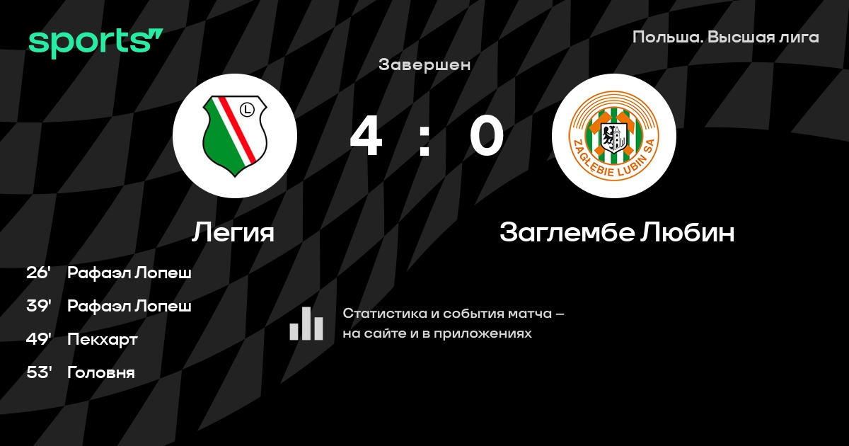 Легия – Заглембе Любин: Легия забивает в 7 последних матчах против этого соперника