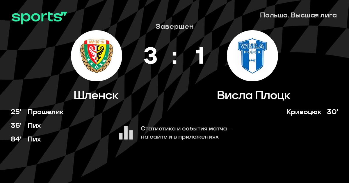 Шленск не проигрывает в 8 последних матчах в турнире «Польша. Высшая лига»