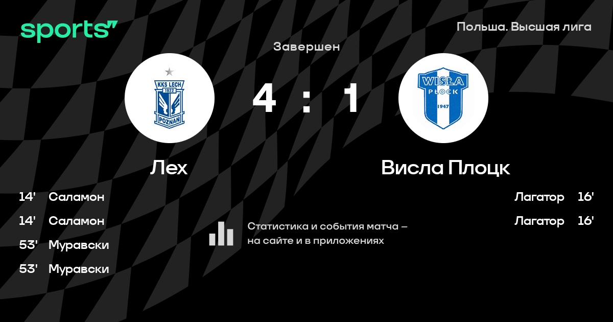 Лех – Висла Плоцк: Лех не проигрывает в 7 из 9 последних матчей против этого соперника