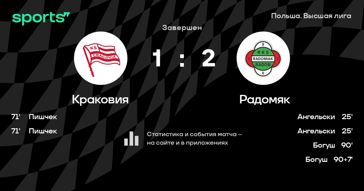 Радомяк не выигрывает в 7 последних матчах в гостях в турнире «Польша. Высшая лига»