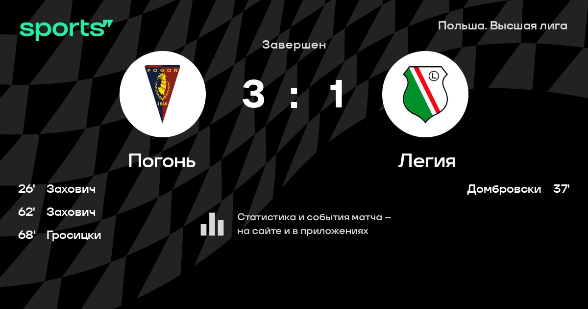 Погонь – Легия: Погонь не проигрывает в 6 из 8 последних матчей против этого соперника