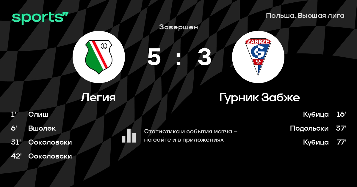 Легия – Гурник Забже: Гурник Забже забивает в 6 последних матчах против этого соперника