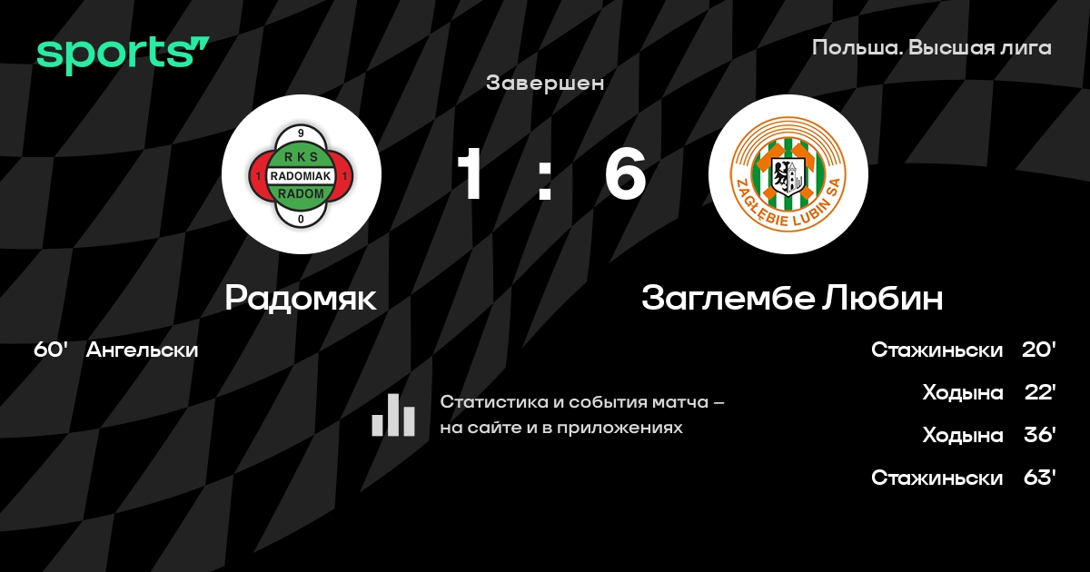 В последних 5 играх Заглембе Любин забивает в среднем 1.60 гола за игру