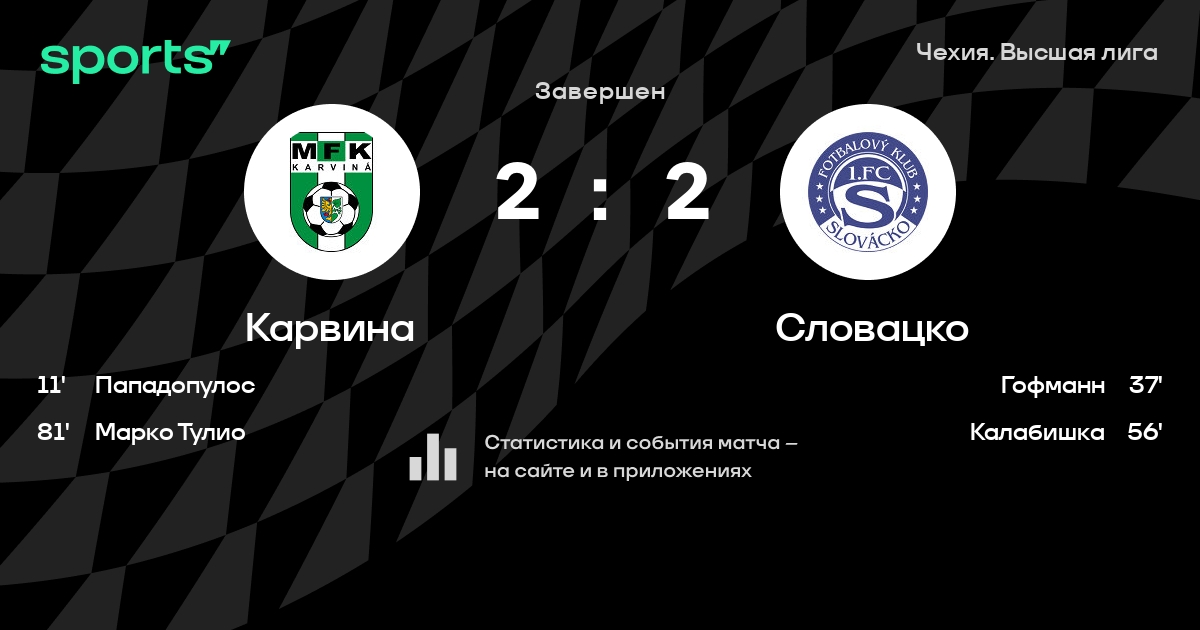 Карвина – Словацко: Словацко не пропускает в 6 последних матчах против этого соперника