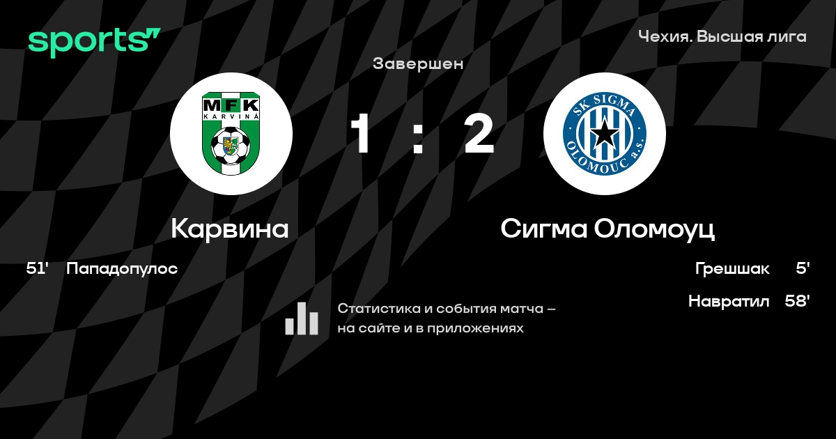 Карвина – Сигма Оломоуц: Сигма Оломоуц не пропускает в 3 последних матчах против этого соперника