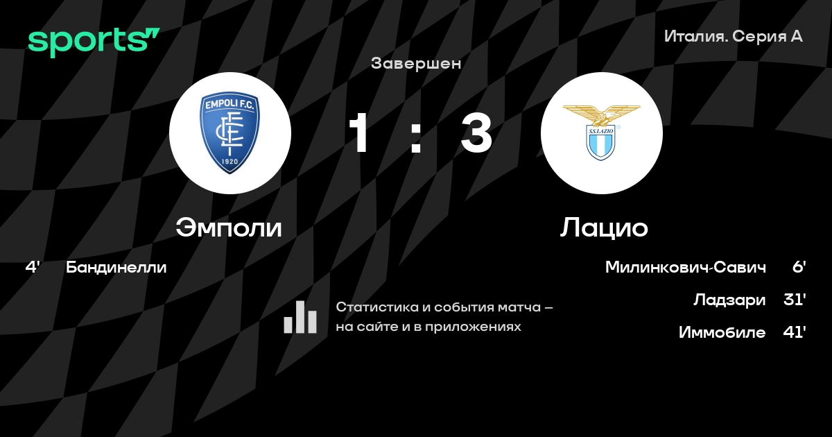Эмполи – Лацио: Лацио побеждает в 5 последних очных матчах