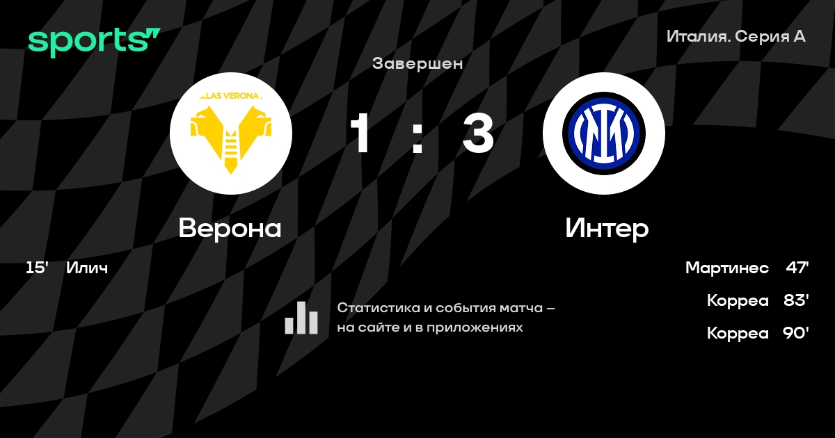 «Интер» вырвал победу над «Вероной» (3:1) благодаря дублю дебютанта Корреа в концовке