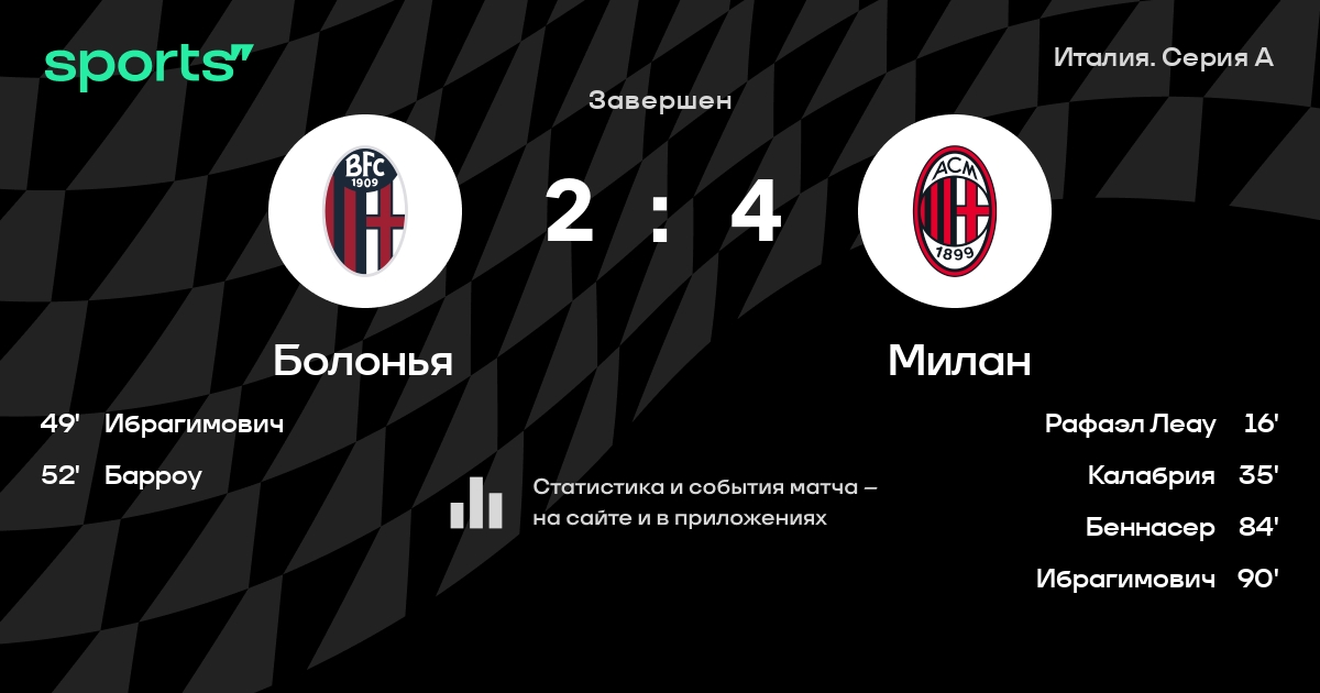 Болонья – Милан: Милан побеждает в 5 последних очных матчах