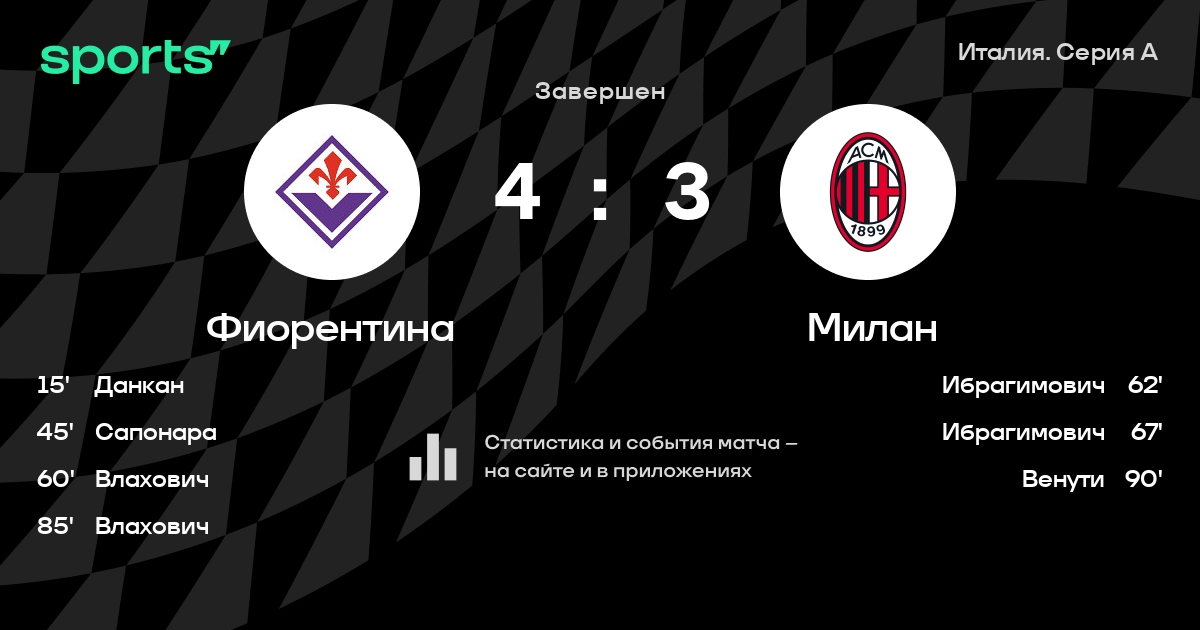 «Фиорентина» обыграла «Милан» – 4:3. У Влаховича и Златана по дублю
