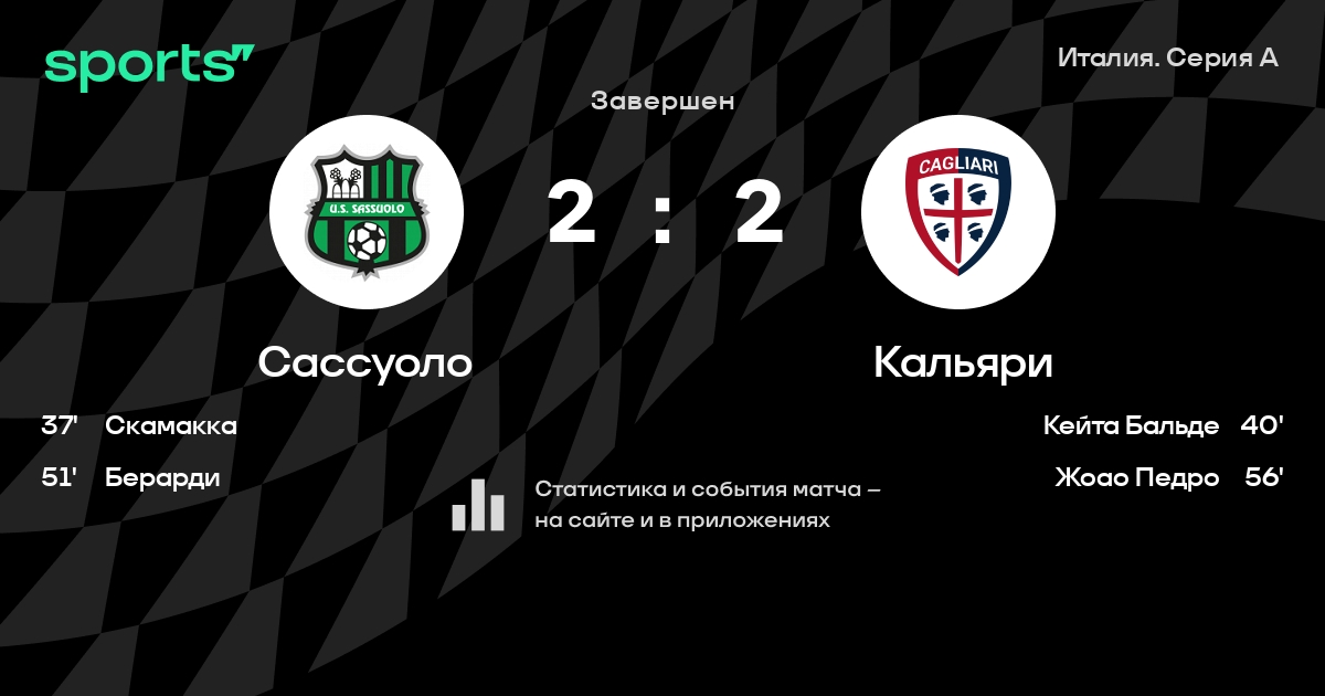 Сассуоло – Кальяри: Кальяри не проигрывает в 6 из 8 последних матчей против этого соперника