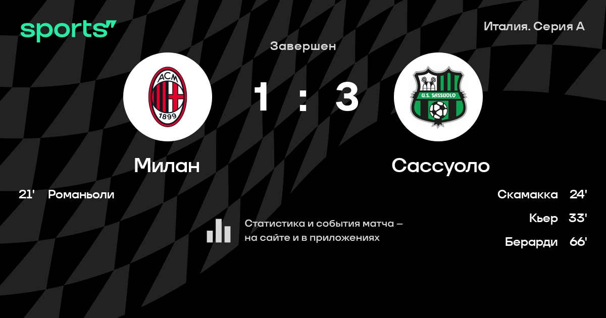 Милан – Сассуоло: Сассуоло забивает в 3 последних матчах против этого соперника