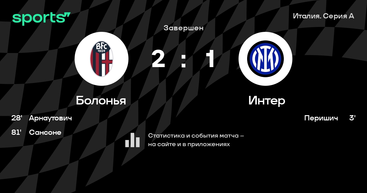 Болонья – Интер: Интер побеждает в 3 последних очных матчах