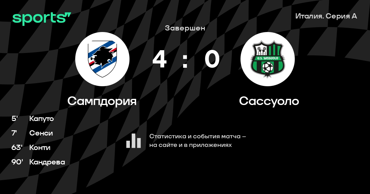 Сампдория – Сассуоло: Сассуоло не проигрывает в 5 последних матчах против этого соперника