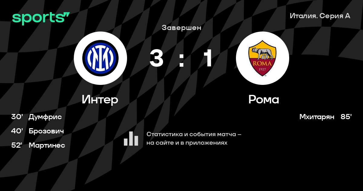 Интер – Рома: Интер побеждает в 3 последних очных матчах