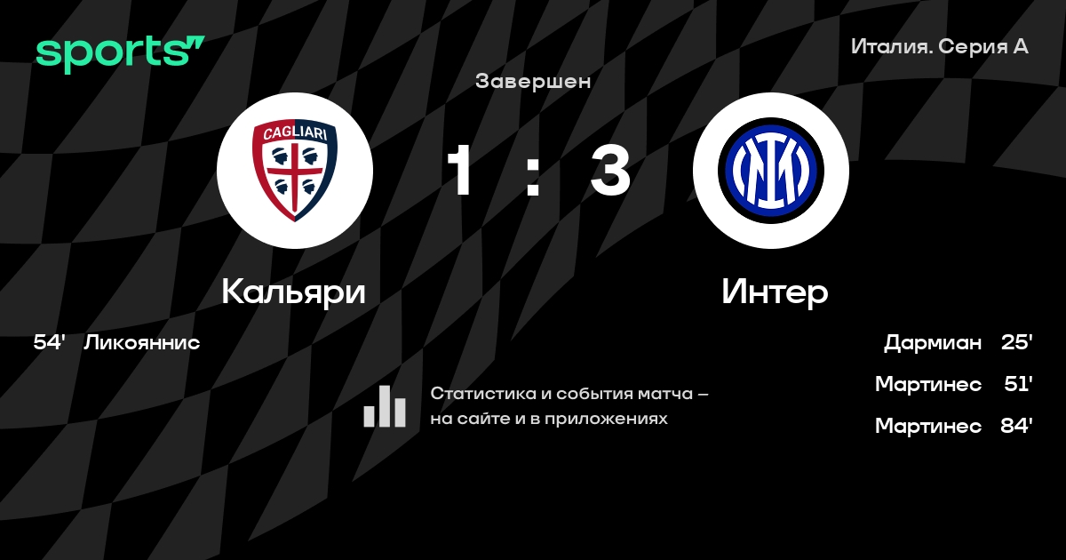 Кальяри – Интер: Интер побеждает в 3 последних очных матчах