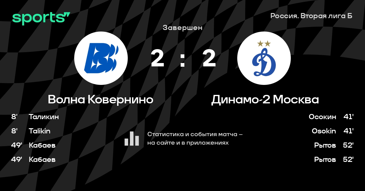 Волна Ковернино – Динамо-2 Москва: коэффициенты
