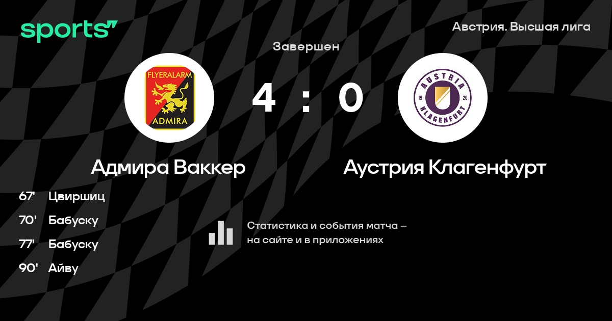 Трансляция Адмира Ваккер - Аустрия Клагенфурт