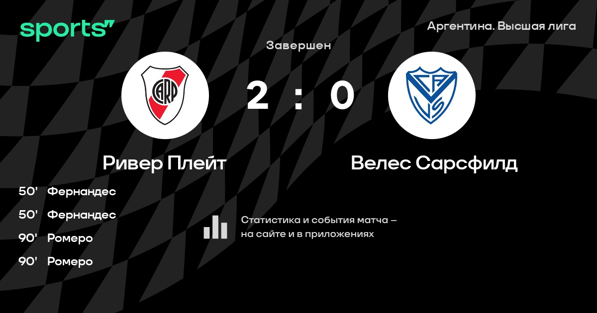 Ривер Плейт – Велес Сарсфилд: Ривер Плейт не проигрывает в 8 из 10 последних матчей против этого соперника