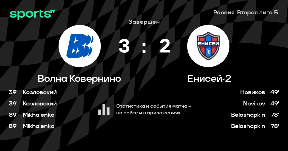 В последних 5 играх Волна Ковернино забивает в среднем 0.40 гола за игру