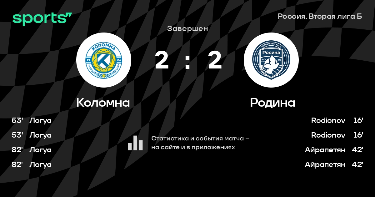 Коломна – Родина: Родина забивает в 3 последних матчах против этого соперника