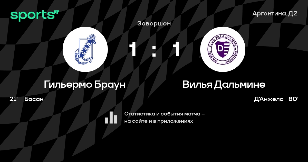 Гильермо Браун – Вилья Дальмине: Вилья Дальмине забивает в 3 последних матчах против этого соперника
