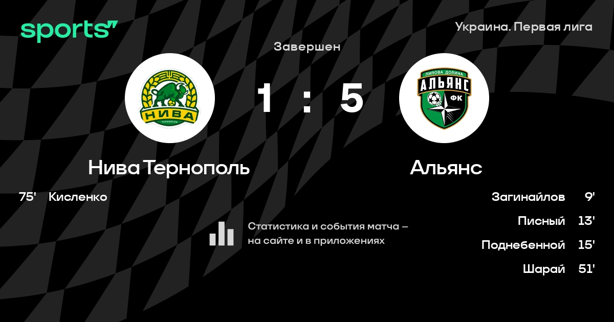 В последних 5 играх Нива Тернополь забивает в среднем 1.00 гола за игру