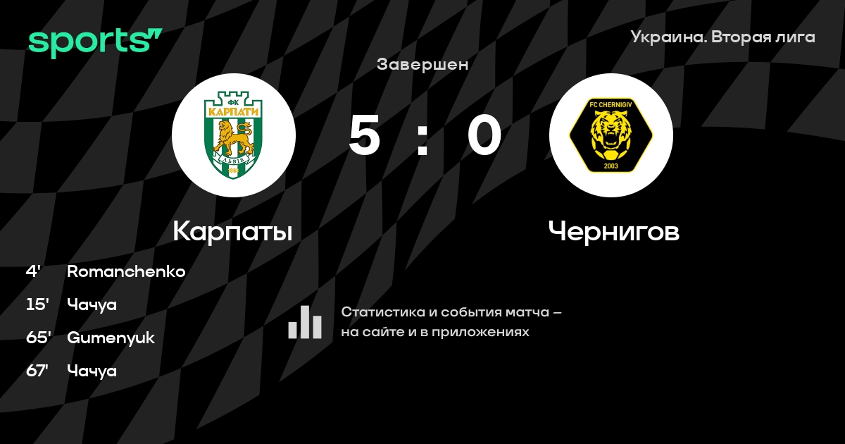 Карпаты – Чернигов: Карпаты побеждает в 3 последних очных матчах в турнире «Украина. Вторая лига»